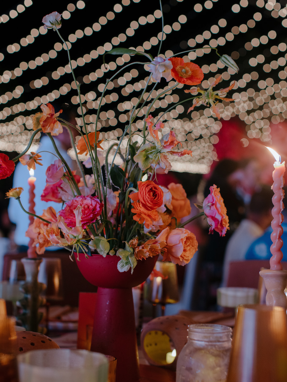 To celebrate two decades in business, Del Cabo Events threw a fiesta to remember. Vibrantly colored floral displays, hanging lanterns, passed signature cocktails, live entertainment, heartfelt toasts, and delectable food for more than 400 people were enjoyed at Flora Farms. The design took center stage with traditional Mexican embellishments, including Chiapas embroidered napkins and custom linens, laser-cut Talavera installations and brightly colored Borlitas hanging from wooden structures.