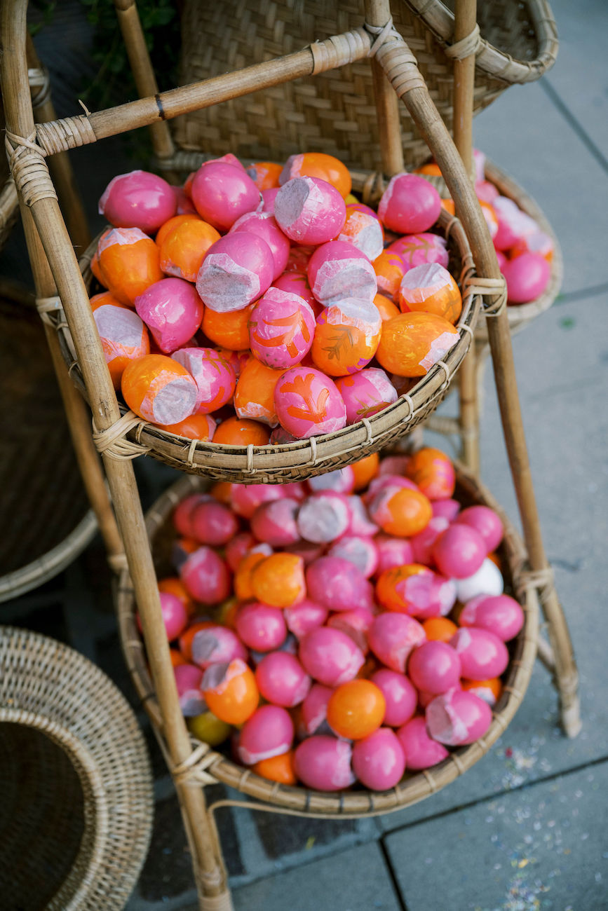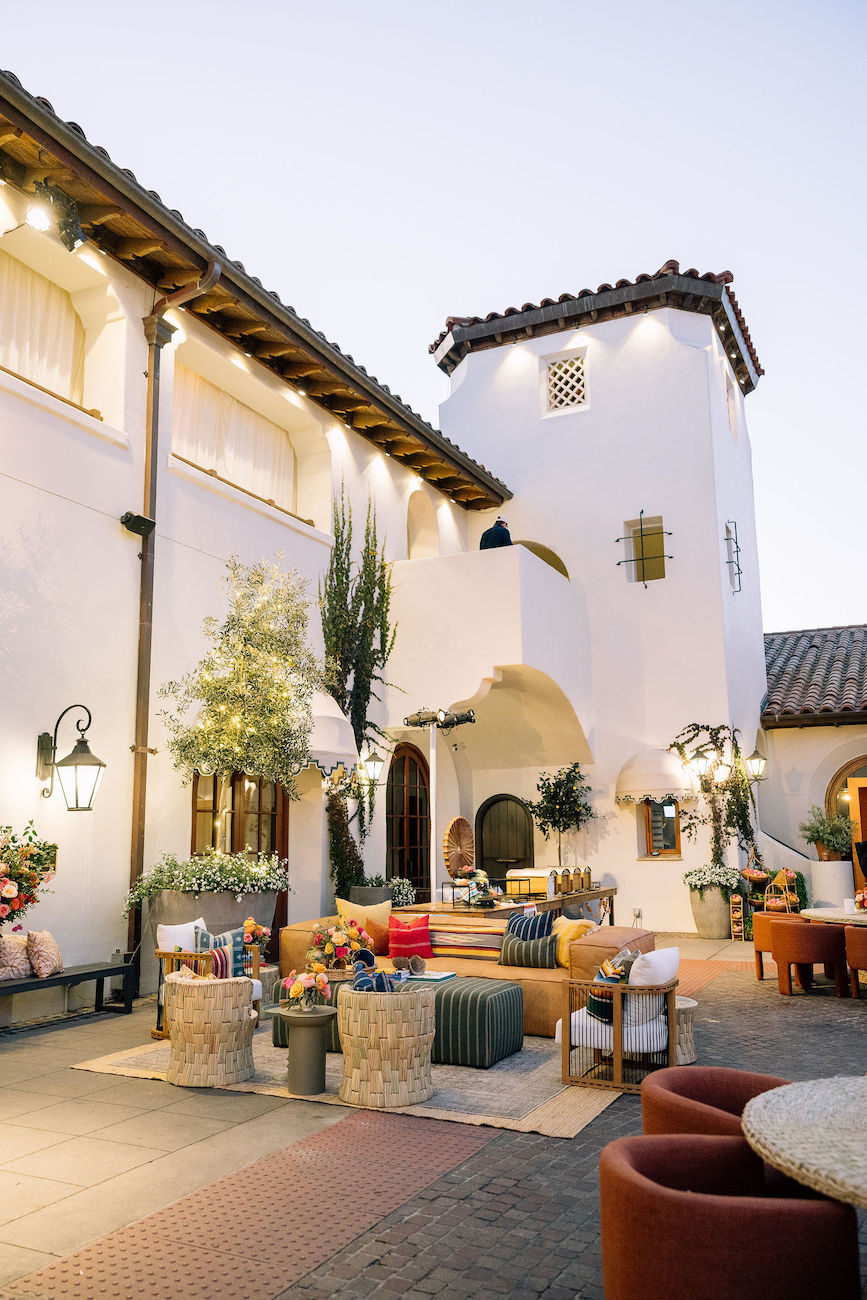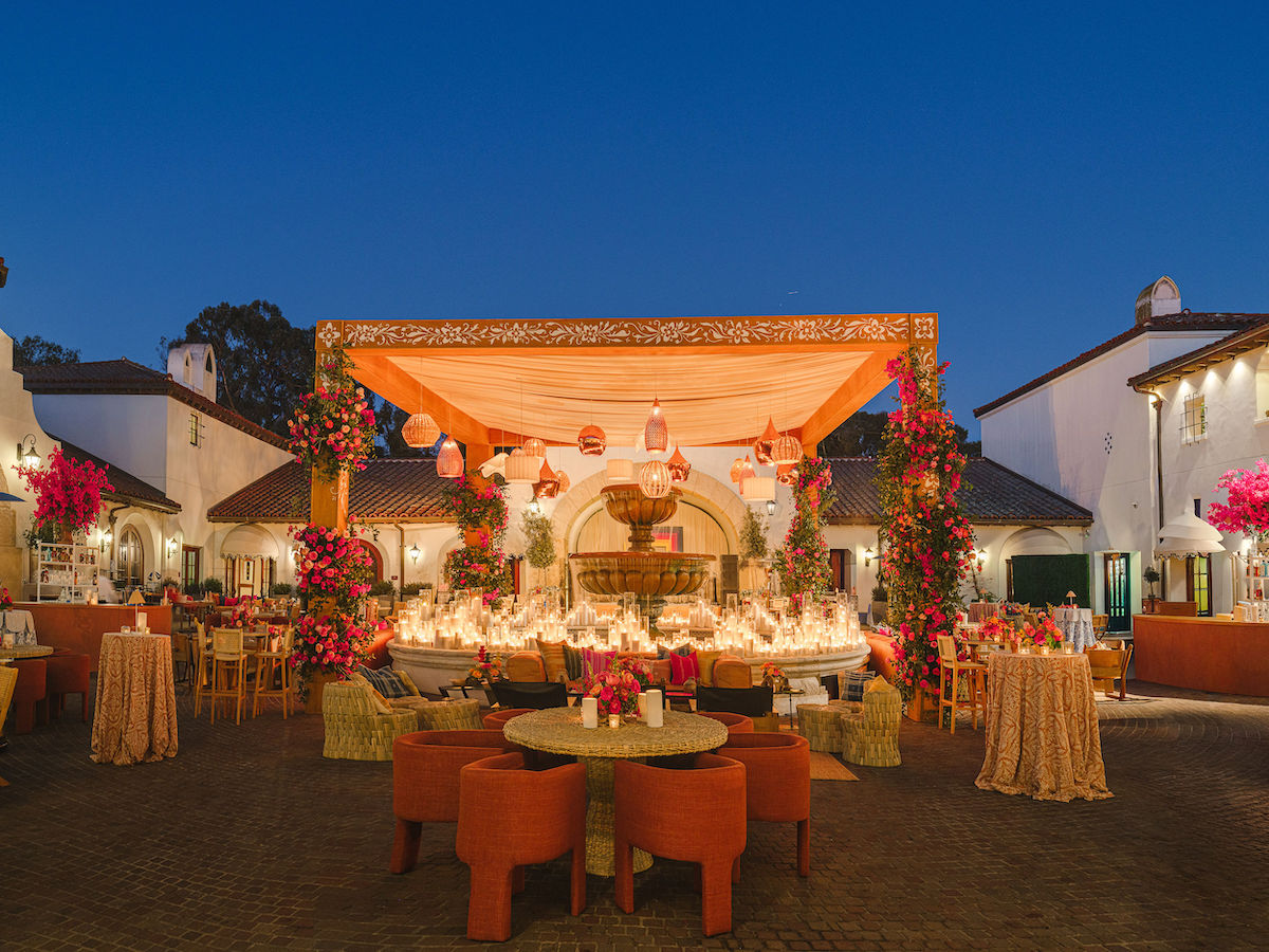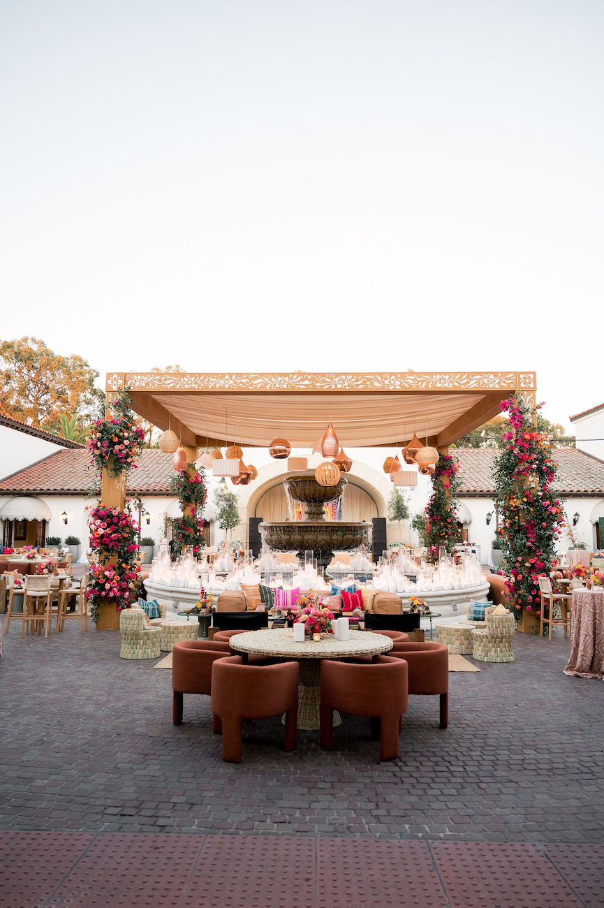 Speiers’ team transformed the Ritz-Carlton Bacara, Santa Barbara’s valet entrance, into an immersive celebration in true Santa Barbara style. Known for Old Spanish architecture, the cobble-stoned roundabout with an oversized fountain in the center couldn’t be more idyllic for a welcome party in Santa Barbara. All 500 guests were treated to an award-winning Mariachi Orchestra (provided by ÉLAN Artists), an interactive photo booth complete with confetti and hand-painted cascarón eggs filled with even more confetti (booth provided by Banga Booth), brightly colored floral installations, and food and cocktails that complemented the entire theme.