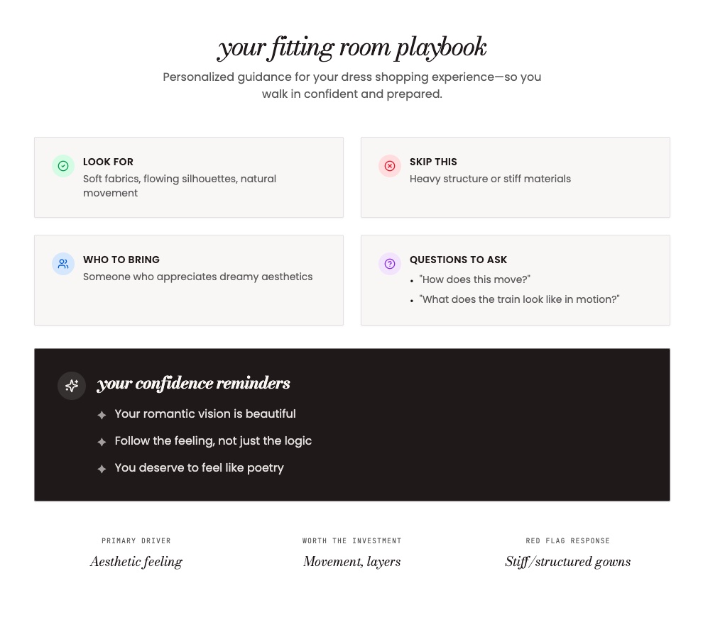 Despite being AI-powered, My Bria isn’t trying to replace stylists, boutiques, or the emotional moments that make dress shopping special.