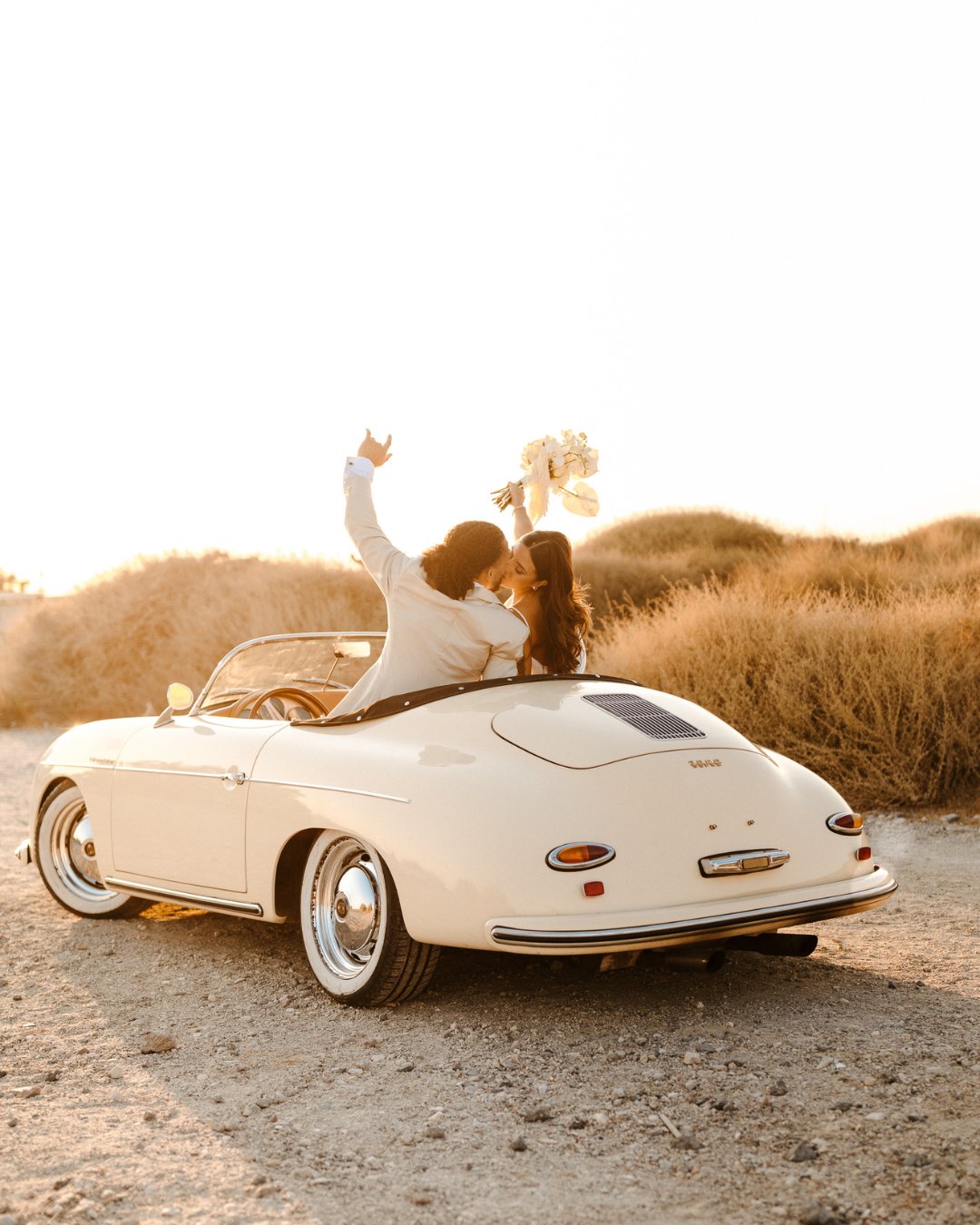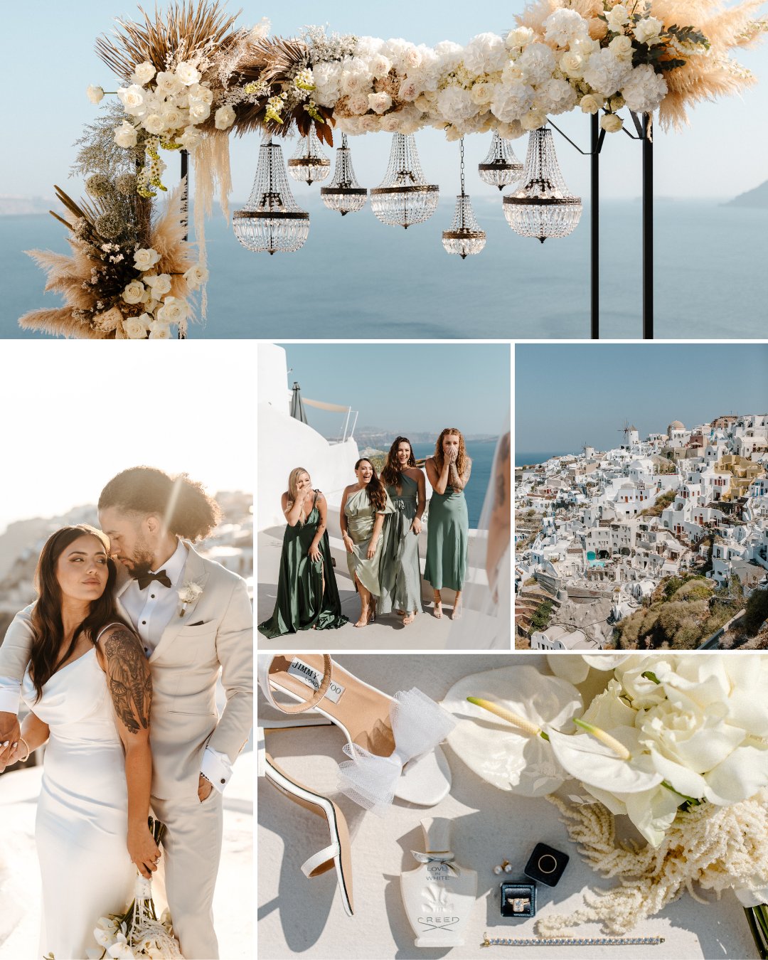 The pair skipped the stress of a big guest list and traded it for an elopement in Santorini that doubled as a group vacation. “We wanted something very small and intimate with a gorgeous backdrop and a place we had never been. Greece was perfect,” Bridgette says.