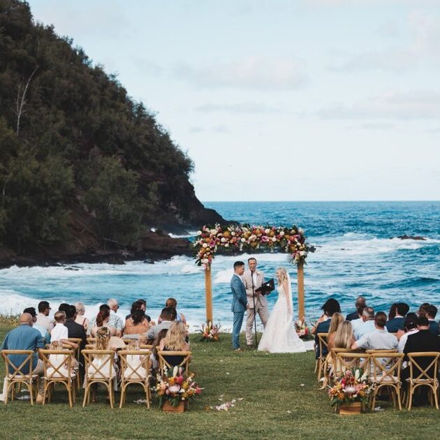 “Everything in the day was personalized in different ways. My favorite part was Igor, the tequila donkey. I am obsessed with donkeys and this was a must on the bucket list. As the guests entered the dinner reception, they found their name on a small flag that was in a tequila shot. The music playlist was carefully curated by us and approved by my teenagers. All very dance-able by all! Once we finished our first dance, the entire party flooded the dance floor and never got off ’till it was over! We surprised everyone with huge fireworks over the ocean during our first dance. That was pretty remarkable.”