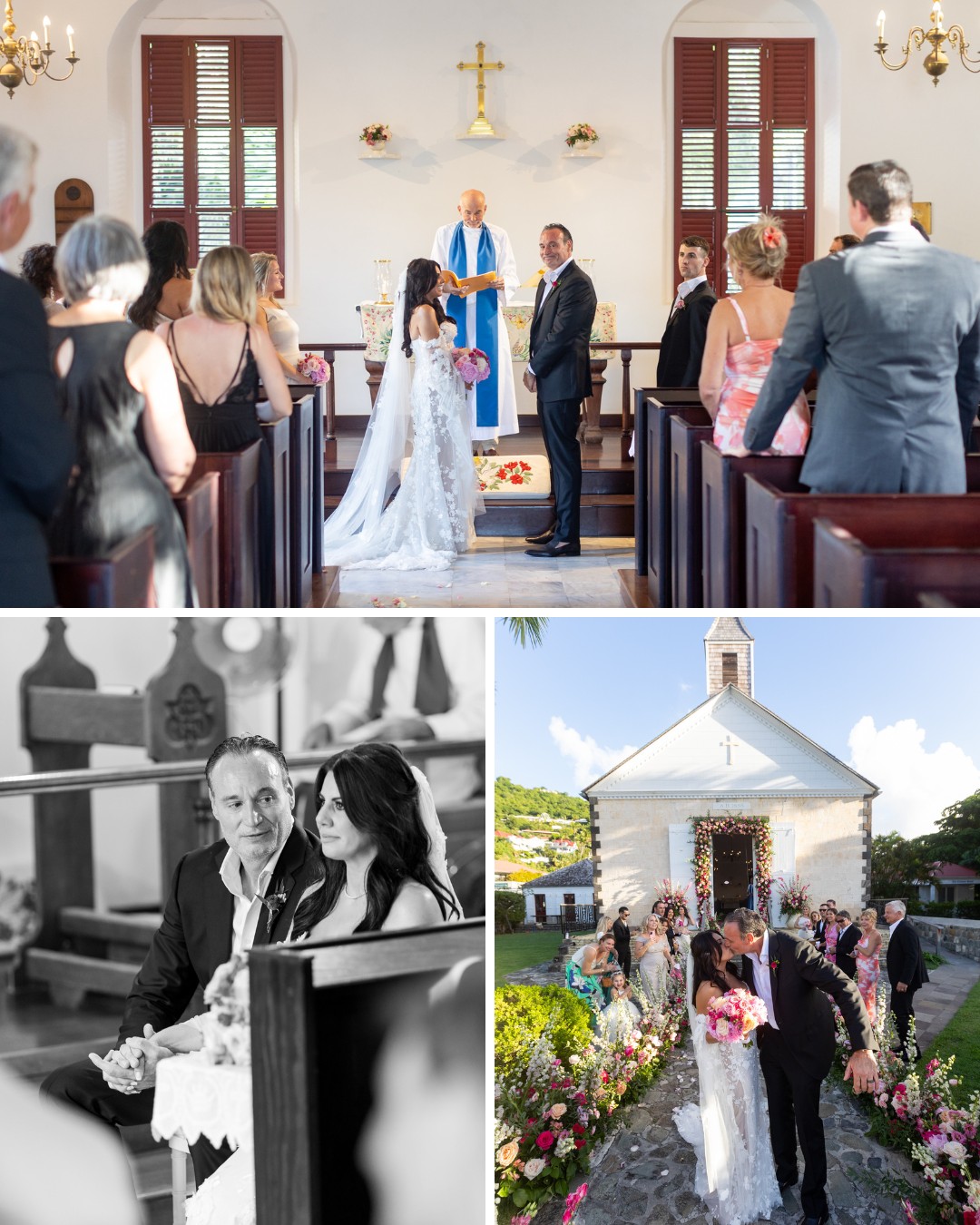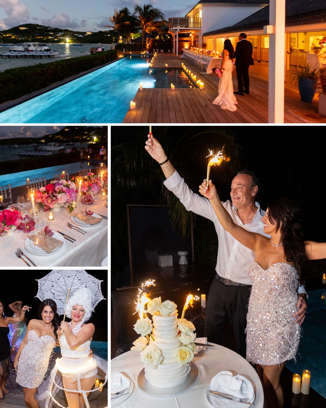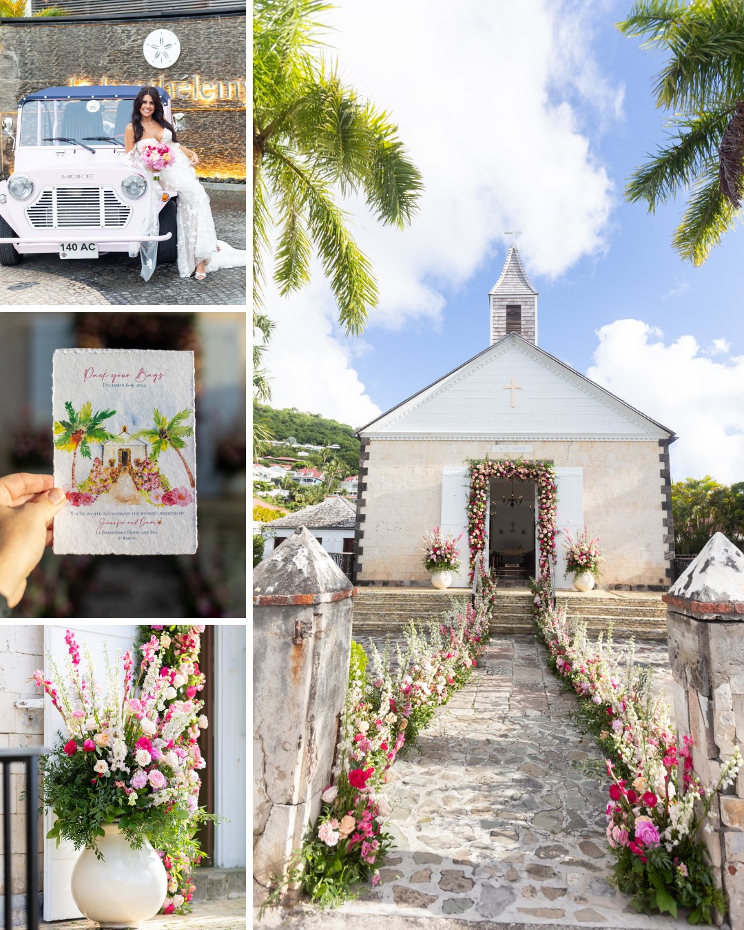Vendors: Photographer: Phillip Van Nostrand; Planner: Epic Presentations; Ceremony Site: St Bartholomews Anglican Church; Reception Site: Le Barthelemy Hotel and Spa; Florist: Liberty St Barth; Stationery: Moon St Barth & St Barth Art Prints; Dessert: Croquembouche by Chef Jeremy Czaplicki; Hair: Selena Sumonja; Makeup: Nicole Gilani; Bride’s Gown: Lee Petra Grebenau; Party Dress: Galia Lahav; Men’s Attire: Suit Supply; Bridesmaids Dresses: Bella Bridesmaids; Entertainment: DJ Philippe Paris & Al Sax; Video: B Studios