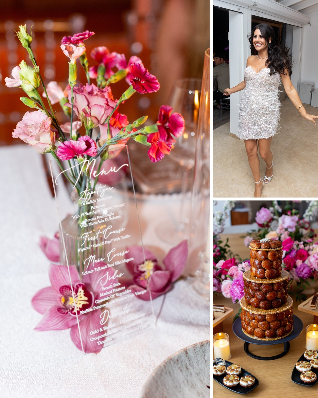 Jennifer and Dave’s celebration was not just a wedding—it was a curated, immersive, joy-filled experience. It was white roses, saxophone serenades, a traditional French croquembouche, and an American cake. It was personalized watercolor invitations and cabaret dancers under the stars. It was classy, tropical, and completely unforgettable.