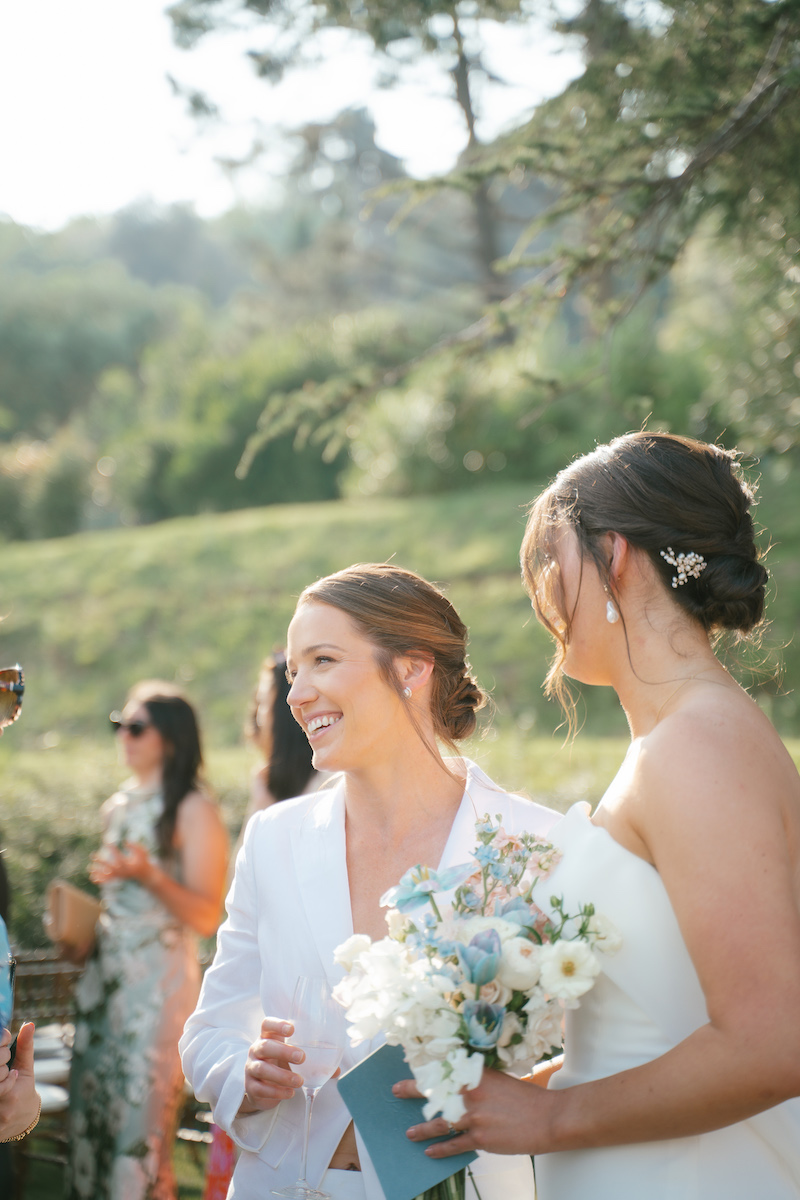 Vendors: Photographer: Xenia Minton; Wedding Planner: Natalia Music Weddings; Ceremony/Reception Site: Villa Gioma; Florist: Kvitea Flowers; Stationery: Natalia Music Weddings; Cake: Pasticceria Regina; Hair & Makeup: Madeline Baucia Bridal; Bride’s Clothing Designers: Favorite Daughter & Besa; Bridesmaids’ Clothing Designer: Birdy Grey; Music: DJ BeMy