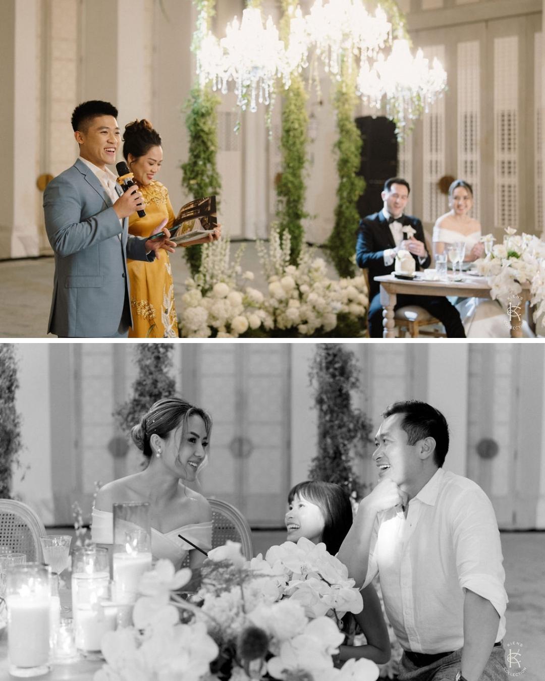 Angelina’s wedding dress became one of the most personal elements of the process. “The dresses in the US were overpriced, ill fitting, and made with coarse, unflattering material,” she says. Rather than compromise, she sketched her own gown and collaborated with a tailor in Vietnam to custom make and ship the final piece. Hair and makeup by Angelina Buido completed a look that felt true to her vision, not a trend.